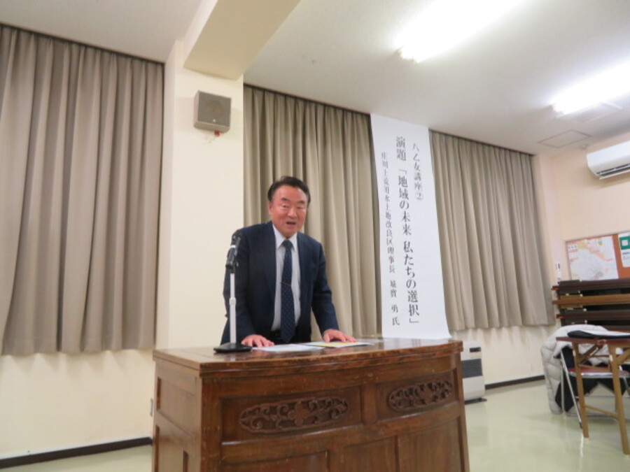 講師に、庄川上流用水土地改良区理事長 城寳 勇氏をお招きし、演題『地域の未来 私たちの選択』でご講演をいただきました。