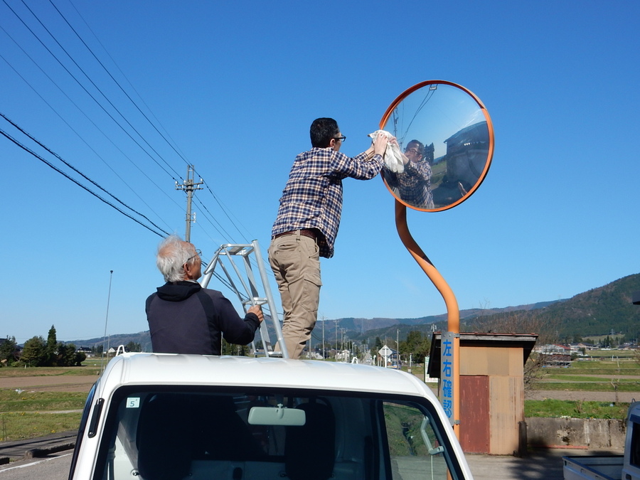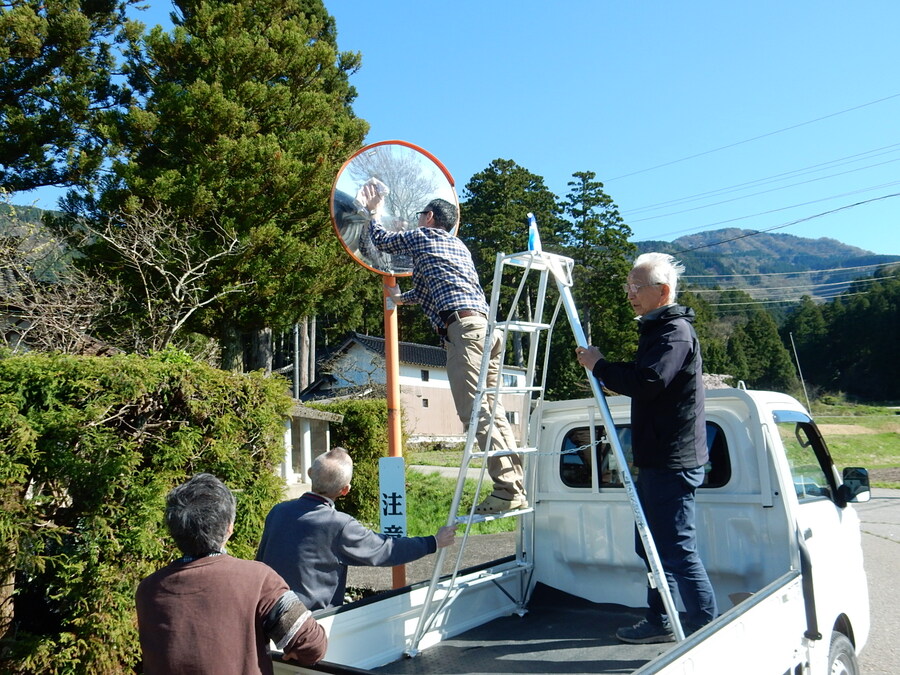 4月12日(日)の午後、南山見地区内の「カーブミラー清掃」が行われました🌸