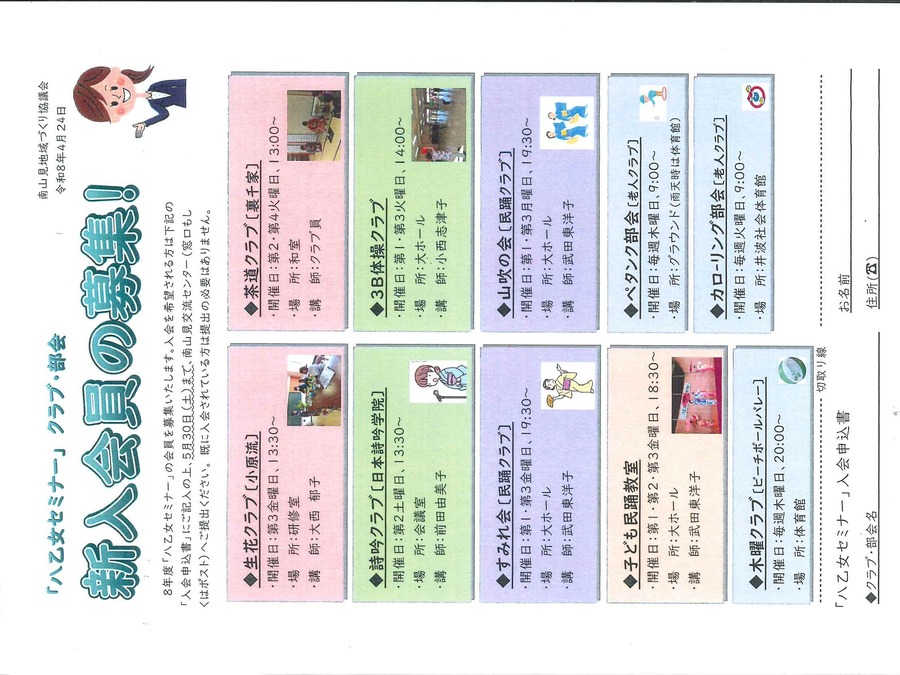 今年度も、生花、茶道、詩吟、3B体操、民踊、軽スポーツと多彩なクラブ・部会が行われています🌷